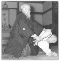 Maitre Ueshiba est né de Yokoru et Yoki Ueshiba le 14 Décembre 1883 à Tanabé au Japon. C'était un enfant de faible constitution et souvent malade, mais très intelligent. Il étudie le chinois et la religion Bouddhiste sous la direction d'un prètre Zen. Il porte un intérêt marqué à la prière et la méditation. Pour se renforcer physiquement, son père le pousse à pratiquer le Sumo et la natation dès l'âge de 10 ans.